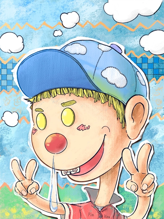 Mr. Pinking is a special boy who lives in the world of a picture book called ‘Toon World’. His signature feature is his comically unusual bangs, which look as if they’ve been cut with pinking shears.