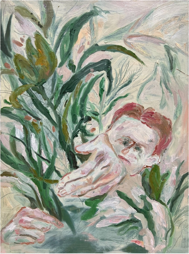 인간은 환경과 특성에 따라 행동과 발화 방식이 달라지지만, 방식 이전에 궁극적으로 인간이 행동하는 원동력은 사랑이라고 관측하였고 감히 모든 인간이 동일하다고 말한다. 2024년부터는 직접적으로 인간이 등장하는 방식에서 식물을 그려보는데 집중한다. 이는 작년에 시골에서 자연과 생활하고, 도시로 돌아와서 재회한 자연에서 느낀 예사가 아닌 감정에서 시작되었다. 나는 길에서 만나는 화분들이 특히 재미있는데, 자연을 나의 거주 반경 내로 들이고 싶은 욕구는 있지만 거주 공간 내로 들이고 싶지 않은 애매함이 그러하다. 하지만 그에게 어떤 예쁘고 잘 어울리는 화분을 선물할 것이며, 지속적으로 잊지 않고 물을 주고 관리하는 행위는 사랑이라고 밖에 말 할 수 없지 않을까? 인간은 무언가를 애정 하는 과정에서 정도가 크든 작든 원하는 방식으로 변화시킨다. 그런 변형은 인간의 욕구를 내재하게 된다. 나는 이러한 변형의 형태를 자연의 모습으로 흘러보내기 보다 인간의 흔적을 포착하고자 하였으며 회화 안에서 그 형태가 어떻게 확장될 수 있는지 지켜보고 싶다.