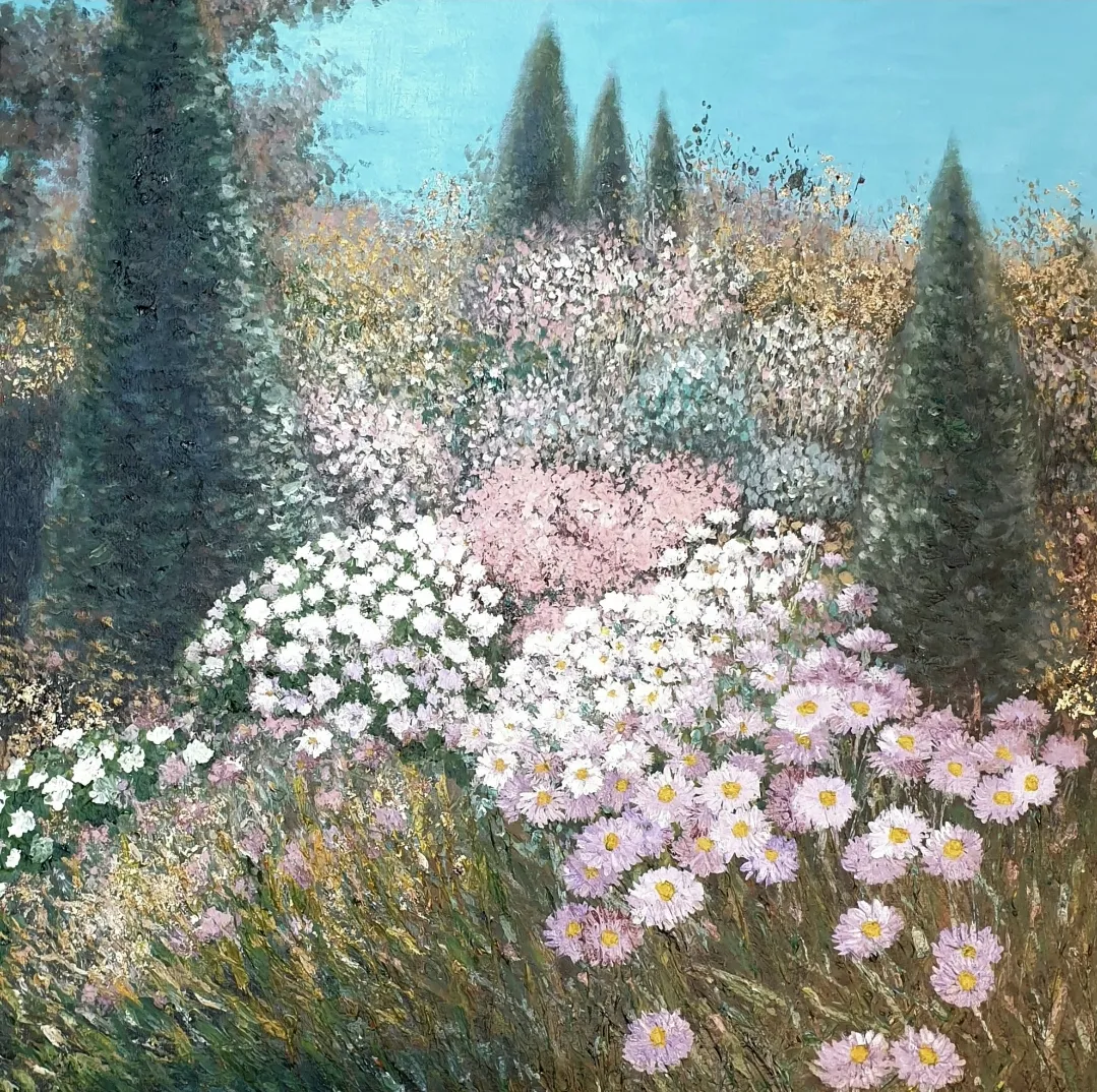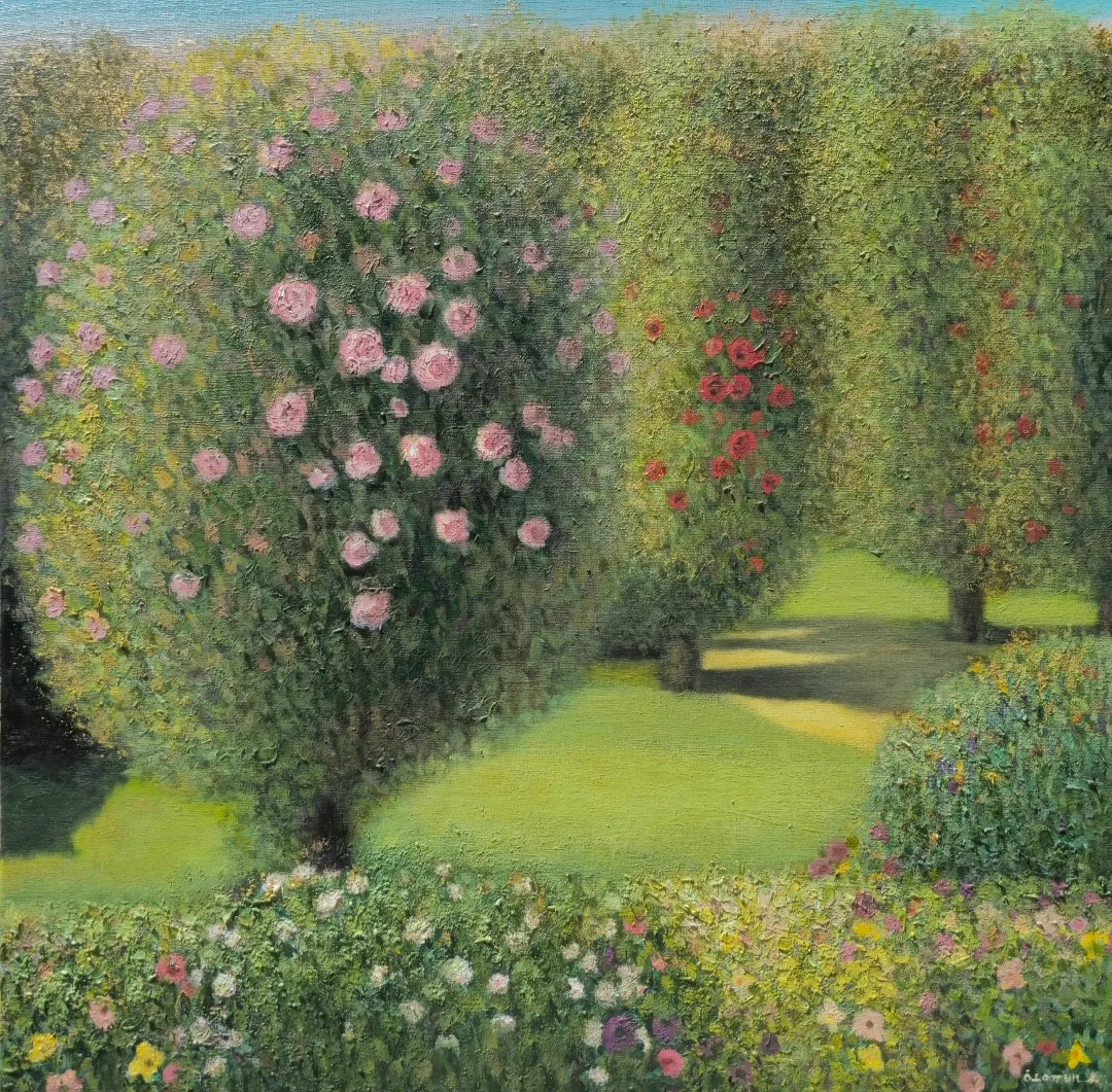 바람의 향기-장미정원 / 65/65센티 / Acrylic on canvas,gold foil / 2024 / 320만원