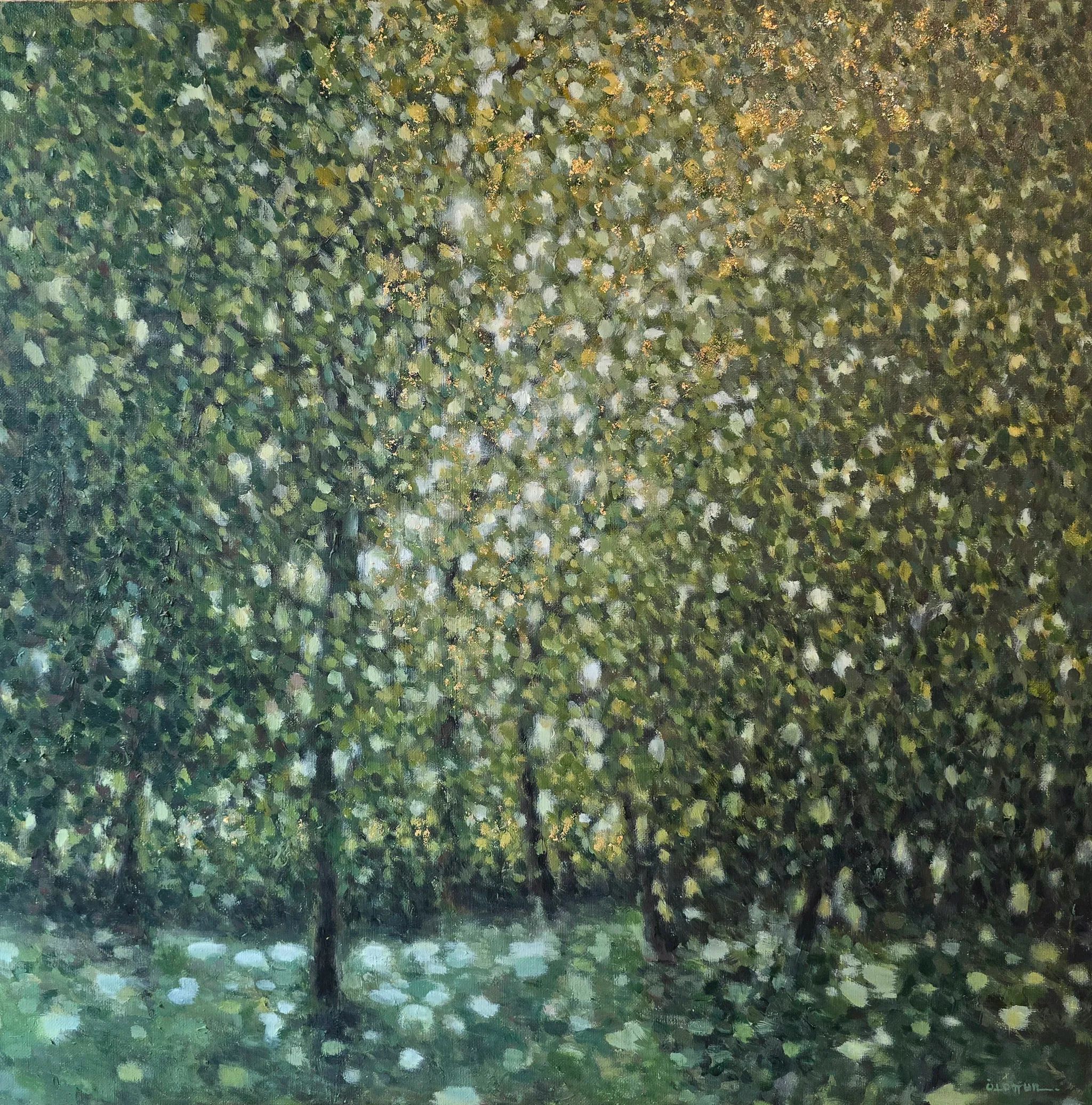 다양한 녹색들이 수없이 중첩되고 거칠게 터치 된 기반에