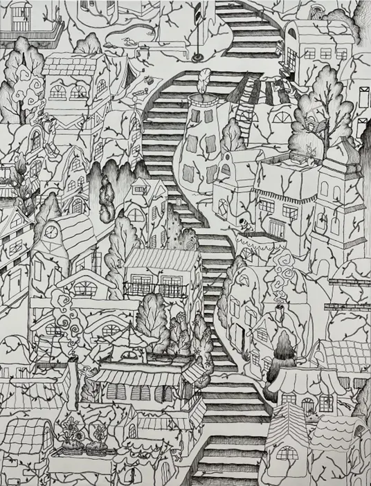 이희수 / Village inside / Pen on paper panel / 65.1×50cm / 2024 / 900,000