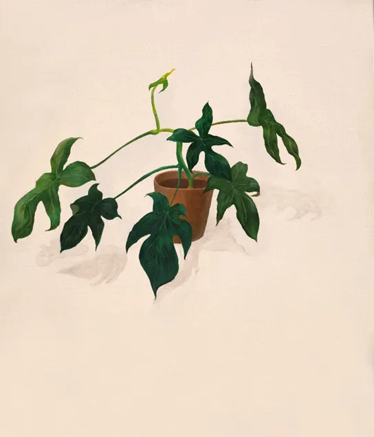 저는 자연과 인공이라는 대조적이면서도 긴밀하게 얽힌 요소들을 작업의 주제로 등장 시킵니다. 특히 이번 전시에 선보이는 작품들은 코로나 시기부터 시작된 실내풍경-화분 시리즈로 실내의 심미적, 기능적 요소로만이 아닌 존재자체로 주인공이 된 자연물의 모습을 담고 일상 속에 숨어있는 조용하지만 강인한 생명력을 시각화합니다. 이를 통해 감상자들에게 위로와 응원의 정서를 전달하고자 하고 자연과 인공이라는 긴밀하게 얽히고 설킨 요소들로 가득 찬 오늘 날의 환경에 대해 생각해보는 시간을 주고자합니다.