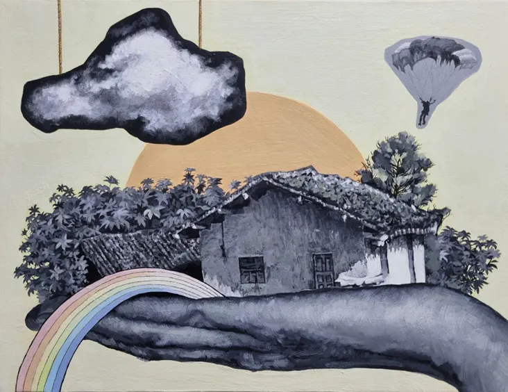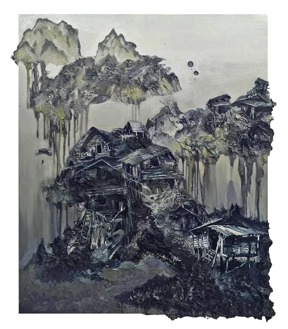'집으로 가는 길', '몽타주 회화', 'house of mountain'의 시리즈 작품으로 '집'과 '흑백'이라는 제한된 조건으로 작업한 작품이다. 색(色)을 배제한 흑백 이미지로 작업하는 것이 켜켜이 쌓아둔 슬픈 기억, 힘들었던 기억, 아픈 기억들을 더 잘 표현할 것이 생각한다.