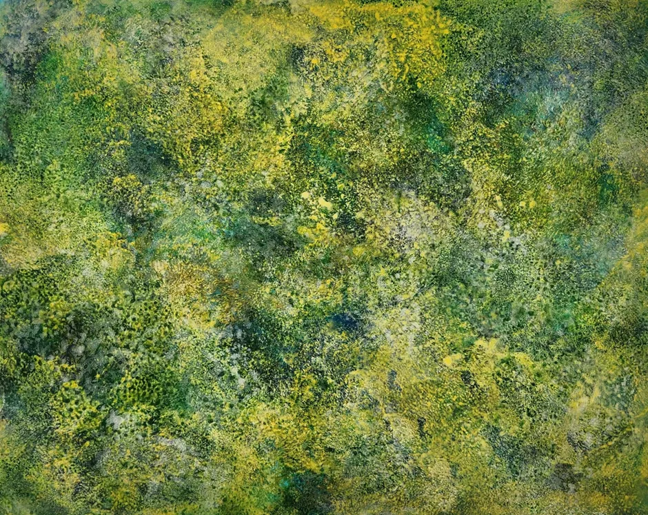 재료가 가지고 있는 본연의 성질과 특성을 살려 물감을 바르며 겹치고, 뿌리며 번지고 흐르는 현상, 겹겹이 쌓아올리는 등의 반복적 행위와 색(컬러)을 통해 개인적 서사와 다양한 일상적 경험들의 축적인 삶을 표출하고, 새로운 시도와 확장된 사고로 관념을 탈피하고 개념적 전환을 하고자하는 작가의 철학을 반영하며 관념과 형태를 해체, 은유적 이미지로 표현하여 추상화했다.