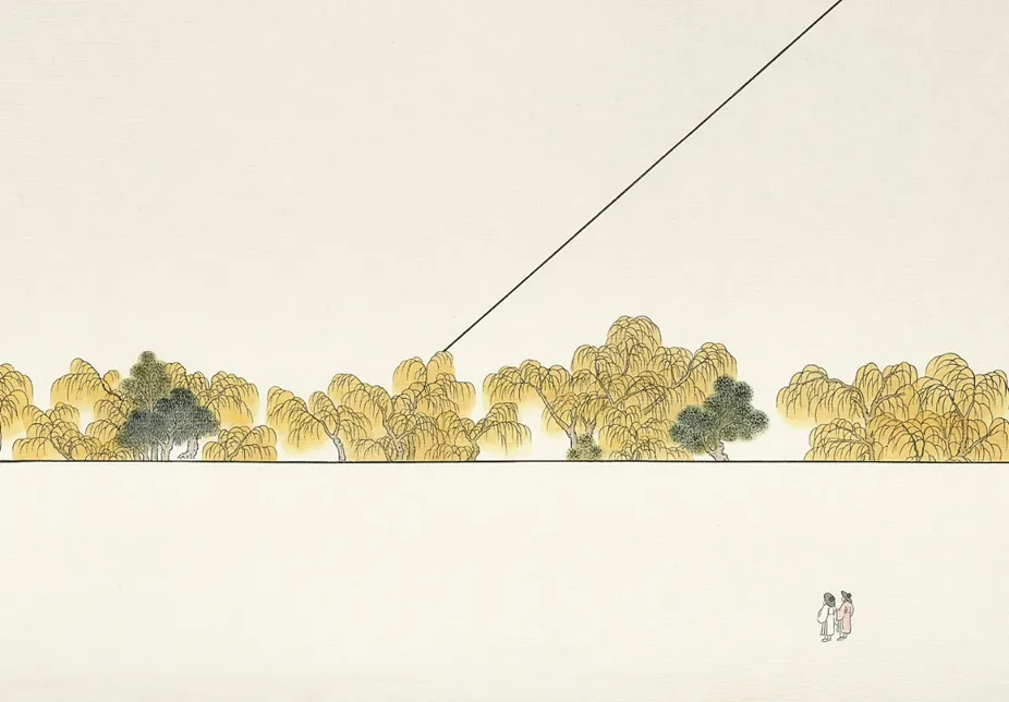 상실과 생명이라는 주제로 자연을 다루기 위해 나에게 익숙한 <동궐도(東闕圖)> 기법을 차용하였다. 동궐도의 풍경을 오려 붙이듯 재구성하여 또 하나의 공간을 만들어내는 것에 초점을 맞추었다. 하나의 시점을 여러 차원으로 분리하여 만든 공간들은 의도한 화면이었지만 어느 순간 저절로 본연의 형태를 찾아가는 것처럼 느껴지기도 했다.
