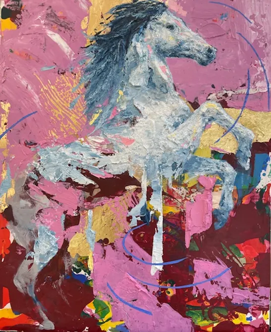 말이 가지고 있는 고유색에서 벗어나 자유로운 색을 말에게 입혀주고 갇혀진 장소에 국한되지 않고 무한한 자유로운 공간으로 초대하여 말들이 뛸수있게 조형의 언어로 그들을 표현합니다.