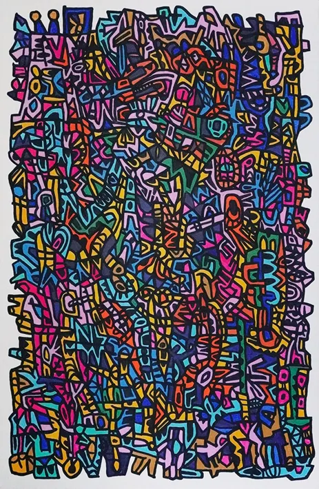 성경 말씀을 묵상하며 떠오른 컬러들과 이미지를 구성하여 캔버스에 물감을 짜내듯 필사하며 읊조리고, 마를 때까지 기다리고, 그 위에 다시 필사하기를 수없이 반복하는 오랜 수행과 노고의 시간.