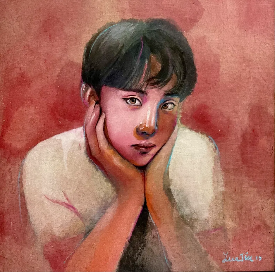 작품 속 인물은 저에게 많은 감정을 느끼게 해준 주변인입니다. 해당 인물을 중심으로 내용이 이어지는 세 개의 시리즈 작품을 제작하였으며, 이 작품은 그 중 두 번째 작품입니다. 아무리 뚜렷하고 인상 깊은 경험이어도 시간이 지나면서 흐릿해지기 마련입니다. 하지만 그날의 따스하거나 차가웠던, 힘들거나 즐거웠던 감정이 마음속에 남아 어렴풋이 느껴지고, 우리는 이를 추억합니다. 작품 속 인물과 함께하며 느꼈던 감정의 흔적과 잔상을 아사천에 물감이 스미고 번지는 점을 이용하여 표현했습니다.