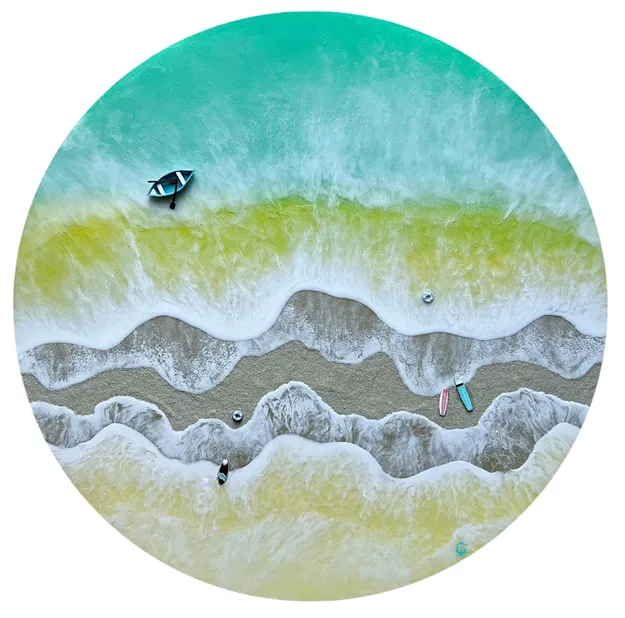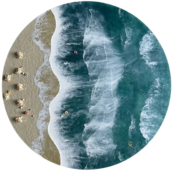 어떤 대상을 본인의 감정으로 주관화한다는 것은 그 대상을 특별한 의미로 생각하고 있다는 것이다. 여기에서 대상은 바로 ‘바다’이다. 바다의 전체 형태와 정형화된 색채로 표현하기보다는 파도의 포말과 다채로운 색감에 중점을 두어 보는 이들의 눈과 마음에 편안함을 주고, 리듬감과 자유로운 흐름 즉 우연성을 가미해 반 입체적으로 장지에 형상화하여 표현하였다. 장지의 흡수성과 에폭시의 물성이 만나 바다의 깊이감을 표현해내는 것이다.