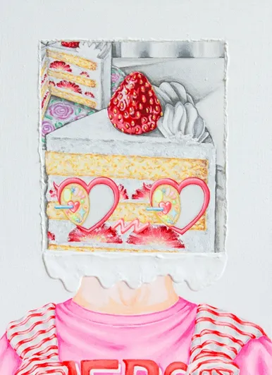 김혜진/ I'm a Strawberry cake/ acrylic on canvas/ 33.4cm×24.2cm/ 2023/ 240,000원