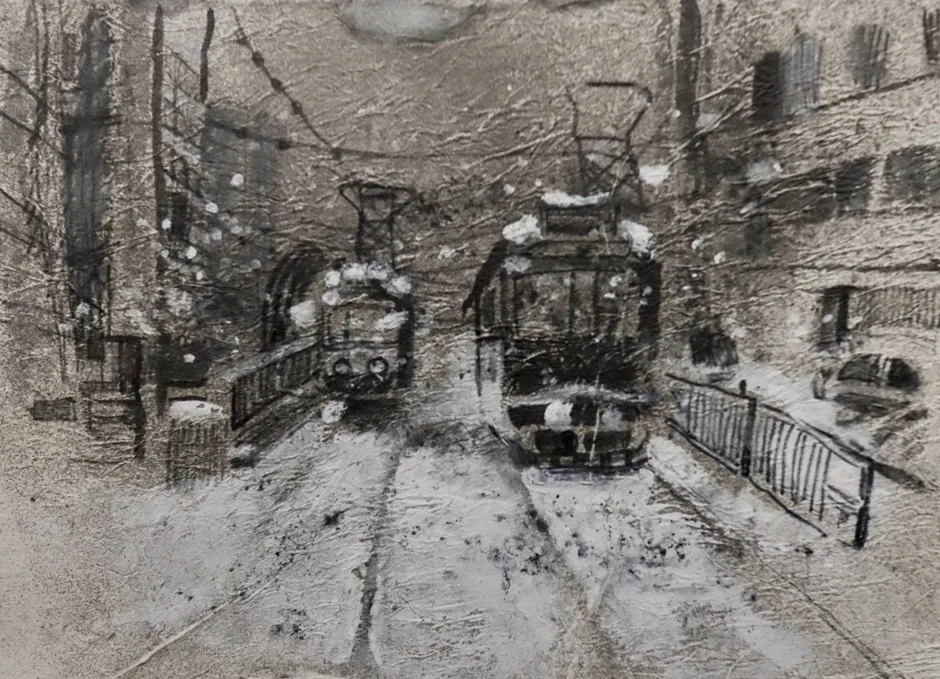 김민영/훗카이도 기차/2022/장지에 호분과 흑연/15*24/30만원(액자포함)