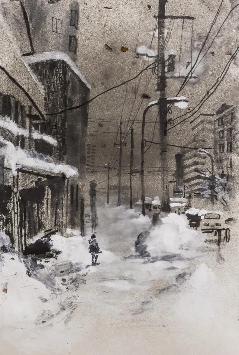 김민영/눈녹는 중/2022/15호/특수 한지에 호분과 흑연/40만원(액자포함)