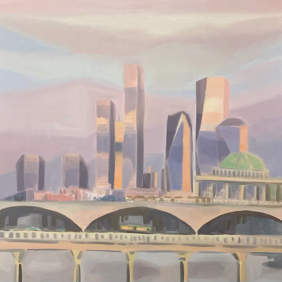 노을 진 하늘이 황홀하다는 생각이 들었다. 이 도시의 모습은 사막 속 오아시스 같다. 보통의 삶, 가장 평범한 일상 속 잔잔한 마음들을 그림에 가둬놓고 초콜렛 꺼내 먹듯 그림을 꺼내 먹는다.