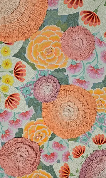 작품설명 1. 사랑비 - 사랑에 관한 순간순간의 다양한 감정들을 꽃비로 표현. 꽃비가 내린 땅위에 새살들이 살아나는 자연의 소중한 생명성을 작가만의 해석으로 사랑에 비추어 작품으로 표현.