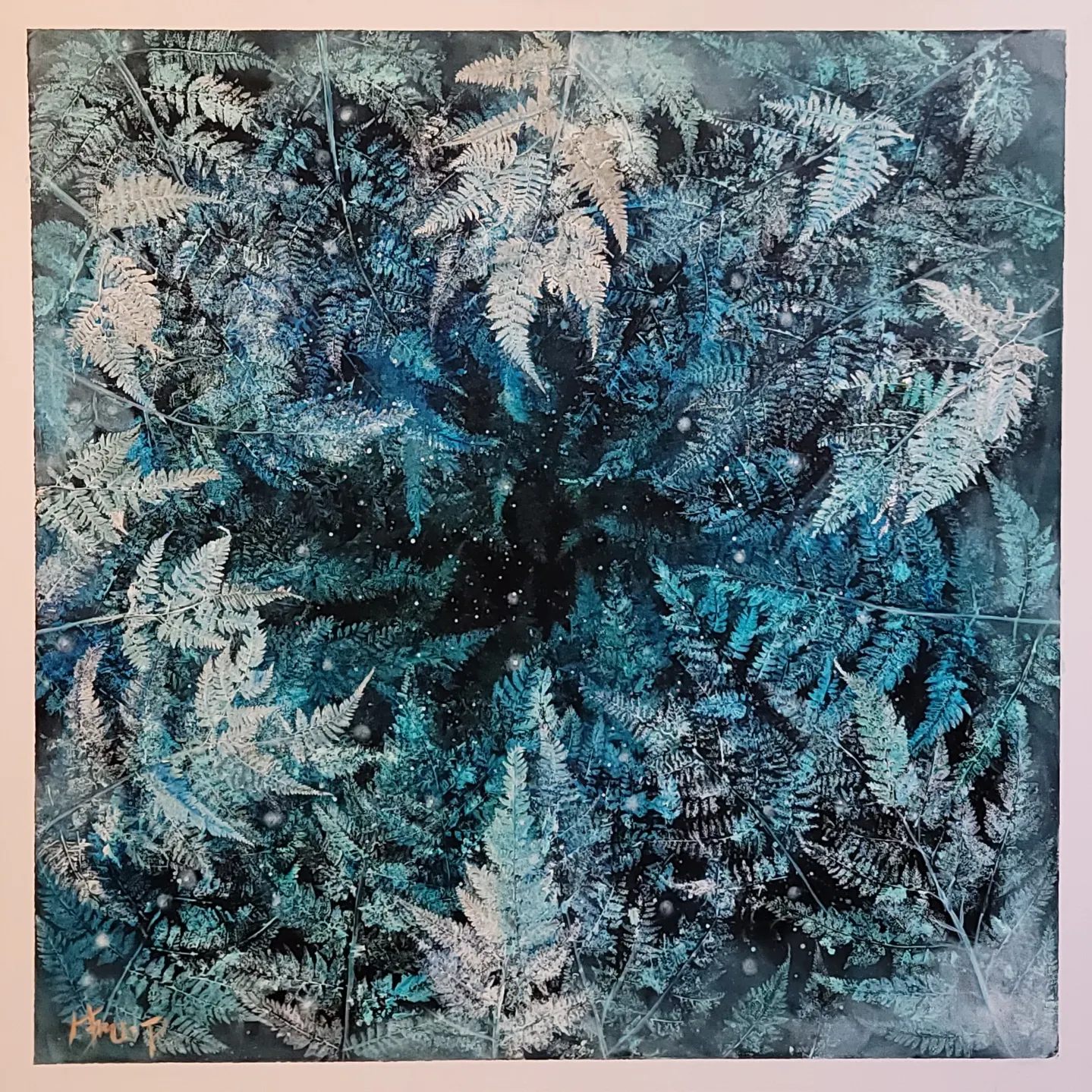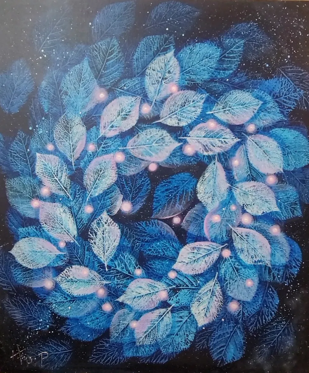 시즌의 반복을 통해 인생의 어느 계절에 있던 새로이 받고 흘러 보내는 유연함. 절망 같을지라도 다시희망, new season 이라는 연작은 계절의 생명을 가시적으로 볼 수 있는 나뭇잎으로 스텐실과 구상화를 접목하여 묽은 물감을 부어 수회 칠하고 말리기를 반복하여 깊이감과 시즌이 끝나 사라져버리는 잎 새가 봄을 통해 부활하는 상징을 표현했습니다.