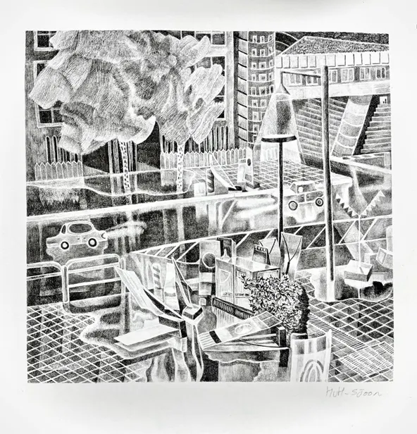 허성준/ 비 내리는 날, 오후 / 석판화 / 43.5 x 42.5 cm / 2024 / 600,000
