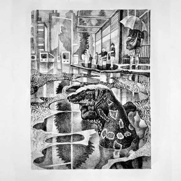 나에게 비가 오는 날은 평소와는 다른 상상과 감정을 불러일으킨다. 빗물이 고인 웅덩이를 보면 다른 곳으로 이어지는 통로가 떠오르기도 하고, 일렁이며 왜곡이 발생하는 모습은 거울 세상 같기도 하다. 어쩌면 지루한 일상 속 여기저기로 빠져나갈 수 있는 여지가 아직 많이 남아있을지도 모른다.