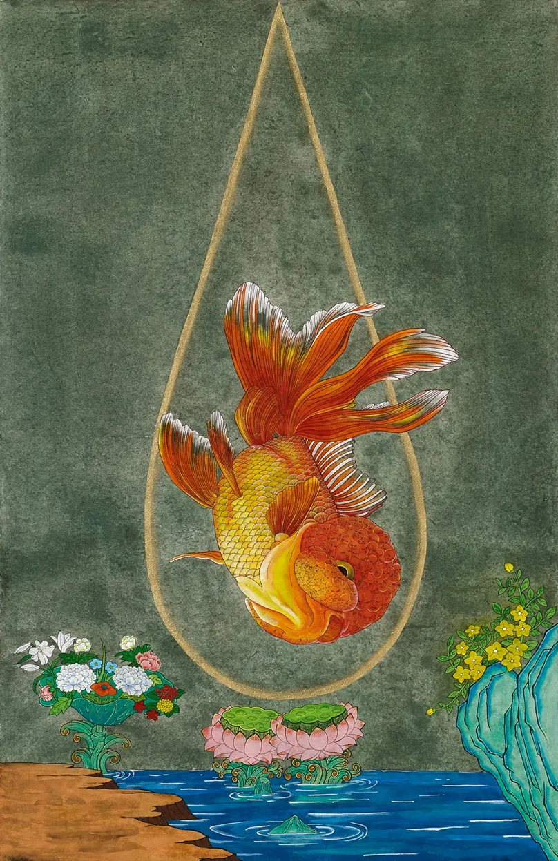 미타 / 호수의 어항 / 장지에 채색 / 우리은행 1002-048-102-842 / 100.4x65.6 / 2024 / 3,000,000