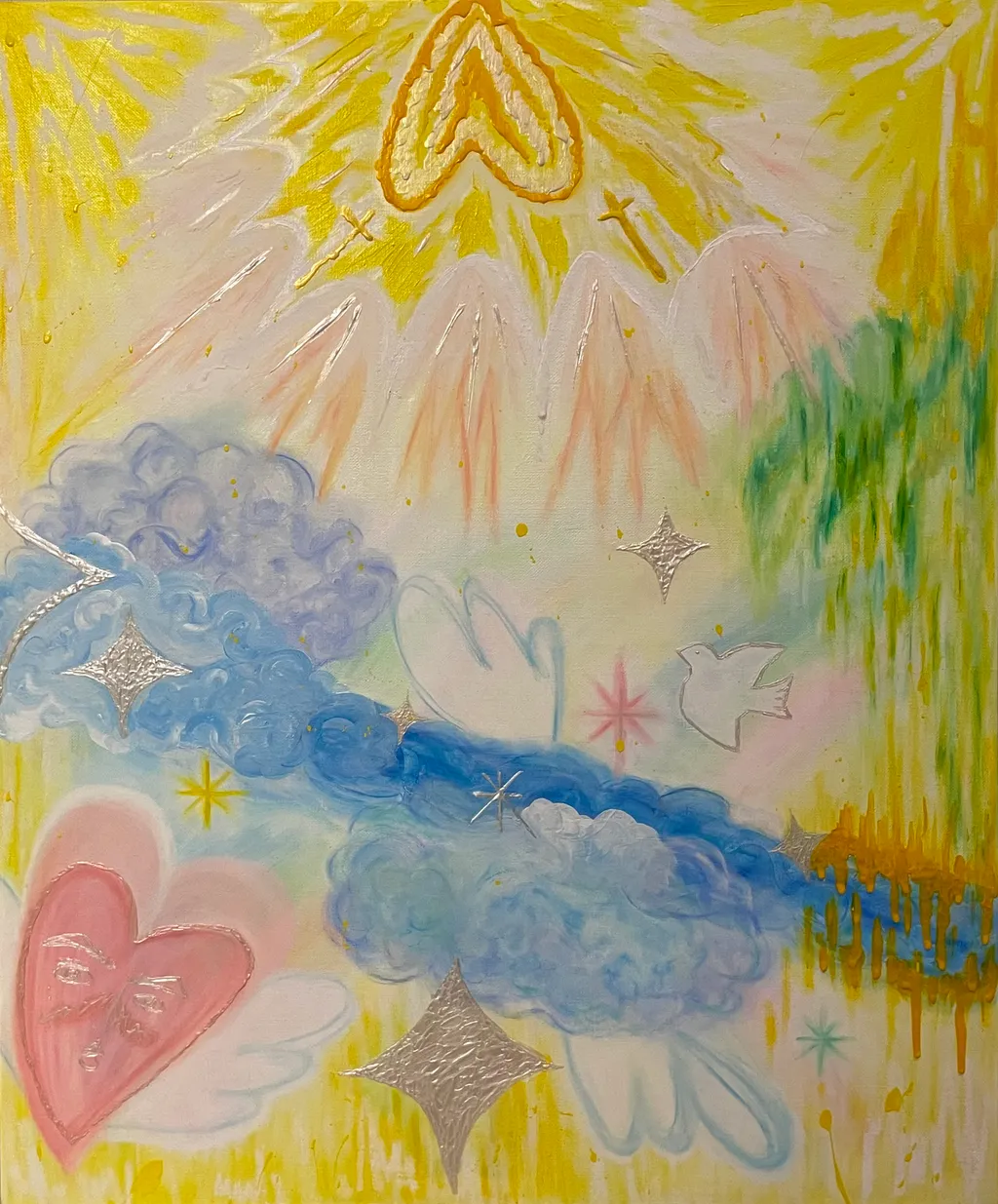 나의 작업은 낙서하듯 오직 마음이 가는 만큼만 칠하고 붙이고 붓을 움직인다. 어떠한 형식이나 규칙에 얽매이지 않고 자유롭게 작업을 한다.