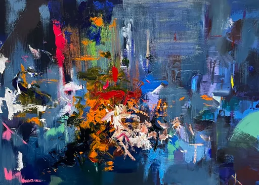 김필경 작가는 자연의 섬세한 감정을 색과 형태로 표현하며, 최근의 작업에서 메밀꽃밭과 제주 풍경을 통해 그 독특한 감성을 탐구하고 있다. 그의 작품은 단순한 자연의 묘사를 넘어 색과 감정이 만나는 지점을 탐색하며 깊이 있는 내면적 경험을 시각적으로 풀어내고 있다.