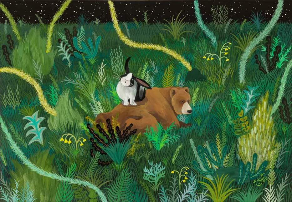 부유하는 수많은 감정과 기억의 잔상 조각들을 모아서 공간을 형성하고, 새로운 장면을 구성하여 심상 공간을 구현한다. 그 공간에 등장하는 나의 자아는 실제 모습과는 다른 형상으로 획일화되지 않은 다양한 소재로 은유, 환유, 상징화하여 미적으로 변장시킨 모습이다. 이때 나는 주로 동물과 자연물을 매개체로 나의 내면세계와 자아를 반영하며 상징적으로 표현한다. 이러한 은유적 표현은 개인적 상징 형성을 도와주는 정신적 개념과 조형적 개념을 내포한다. 예를 들어 나는 곰을 자주 그리는데, 곰 자체를 보여주고 싶어서가 아니라 곰을 통해 내가 느끼는 감각이나 기억, 감정들, 공감각적인 무언가를 드러내고자 함이다. 또한 현실 속에서 억제된 욕구를 상상의 세계를 통해 해소하고 자아 속에 숨어있는 심상적 욕구를 표출하고자 한다.