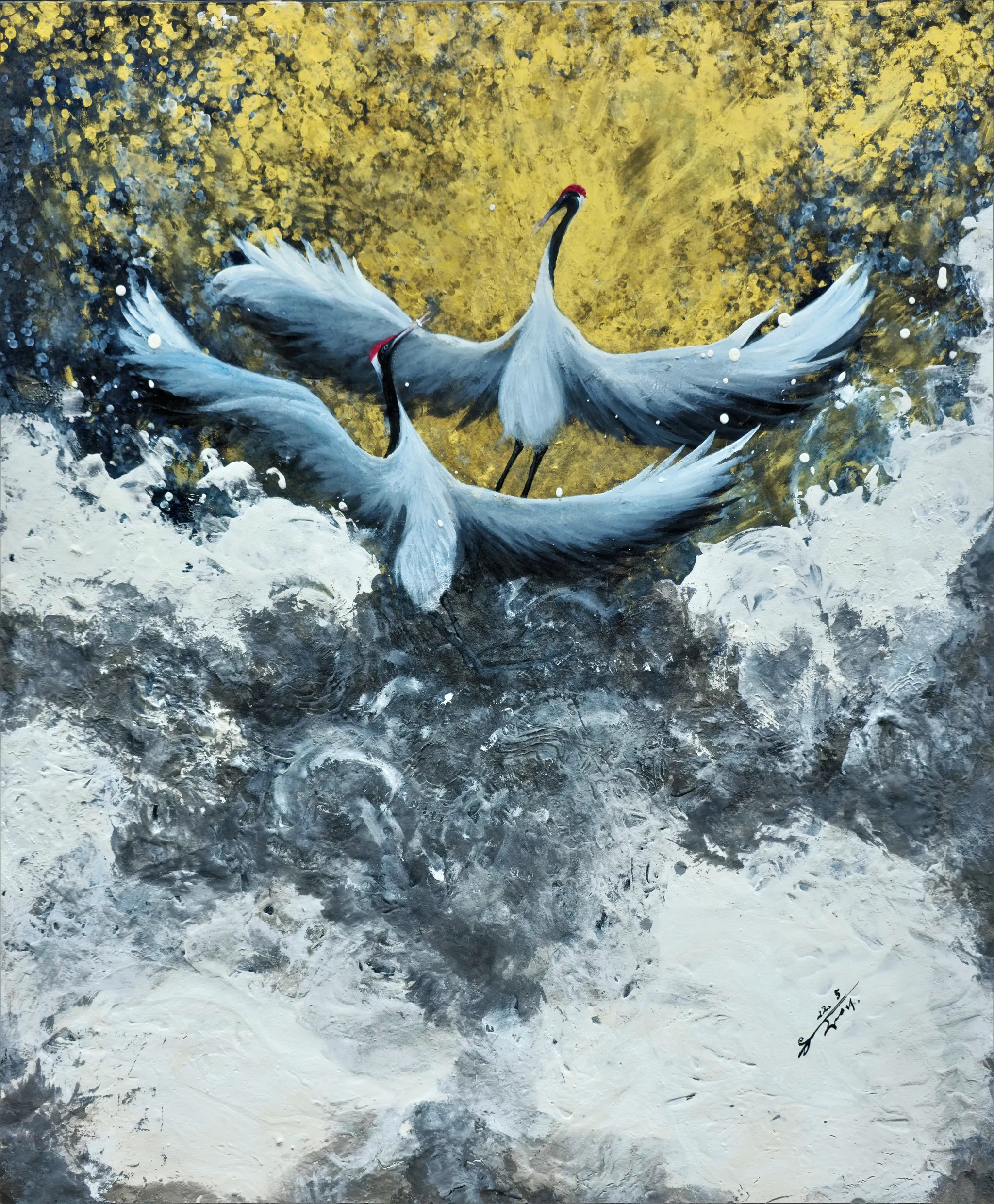 하얀 날개를 가진 우아한 학이 위로 위로... 한없이 날개 짓을 하면 오른다.