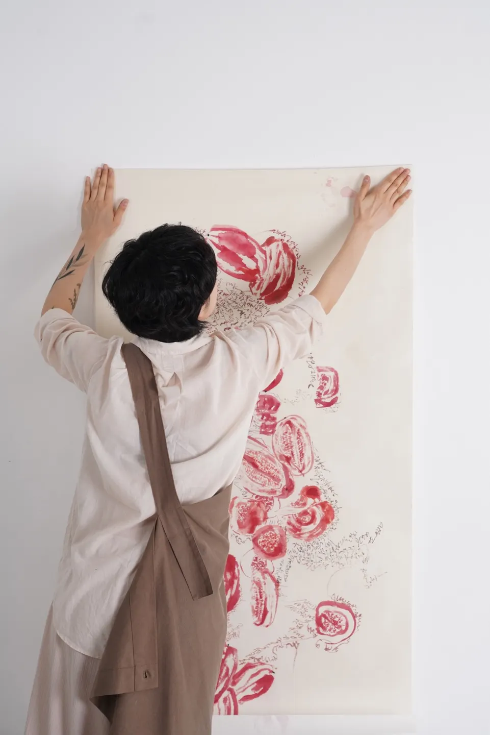 빨강참외, 순지에 수묵채색, 70x130cm, 2022
