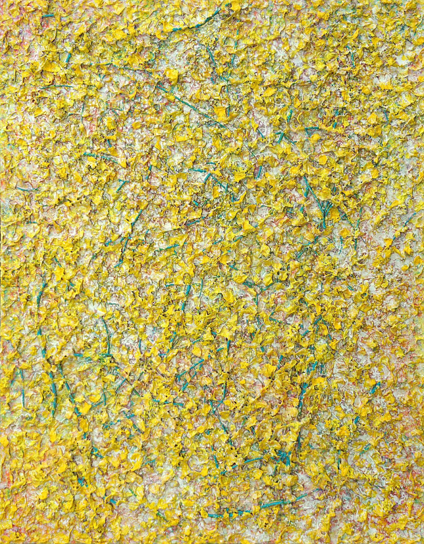 이 번 전시회에 출품하는 평온 연작 중 9번 작품은 겨울을 앞둔 은행나무의 노란색에서 영감을 얻은 작품으로 삶의 황혼기에 잠시 아름답게 빛나는 작가의 삶과 비슷한 모습이어서 작업을 하게 된것이다. 작가의 삶 뿐만 아니라 자연의 모습도 그렇다는 생각에 지금의 삶에 대한 깨우침이 생겼고 이로 인해 평온한 마음을 얻게 된 이야기다. 전 인생 중 아주 짧은 시간이지만 그 순간을 위해 모든 에너지를 집중해오는 사람들에게 노란색으로 따뜻한 위로와 포근한 안식처의 느낌을 전달하고 싶다.