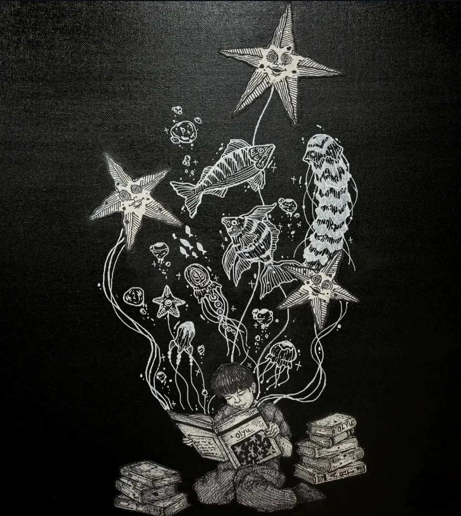 오류작가 / 낙하/ 캔버스, 네임펜,아크릴물감/ 53 x 45.5cm / 2024 / 2.100.000원
