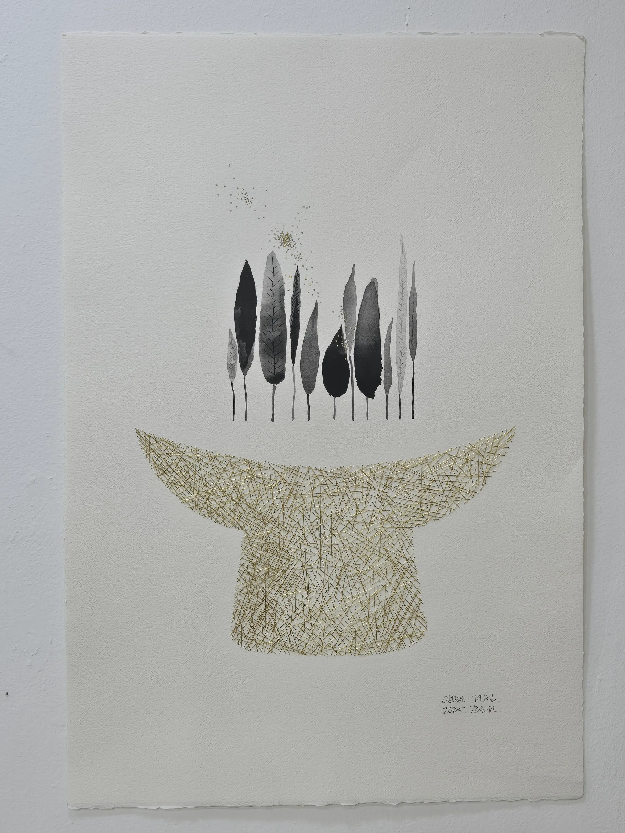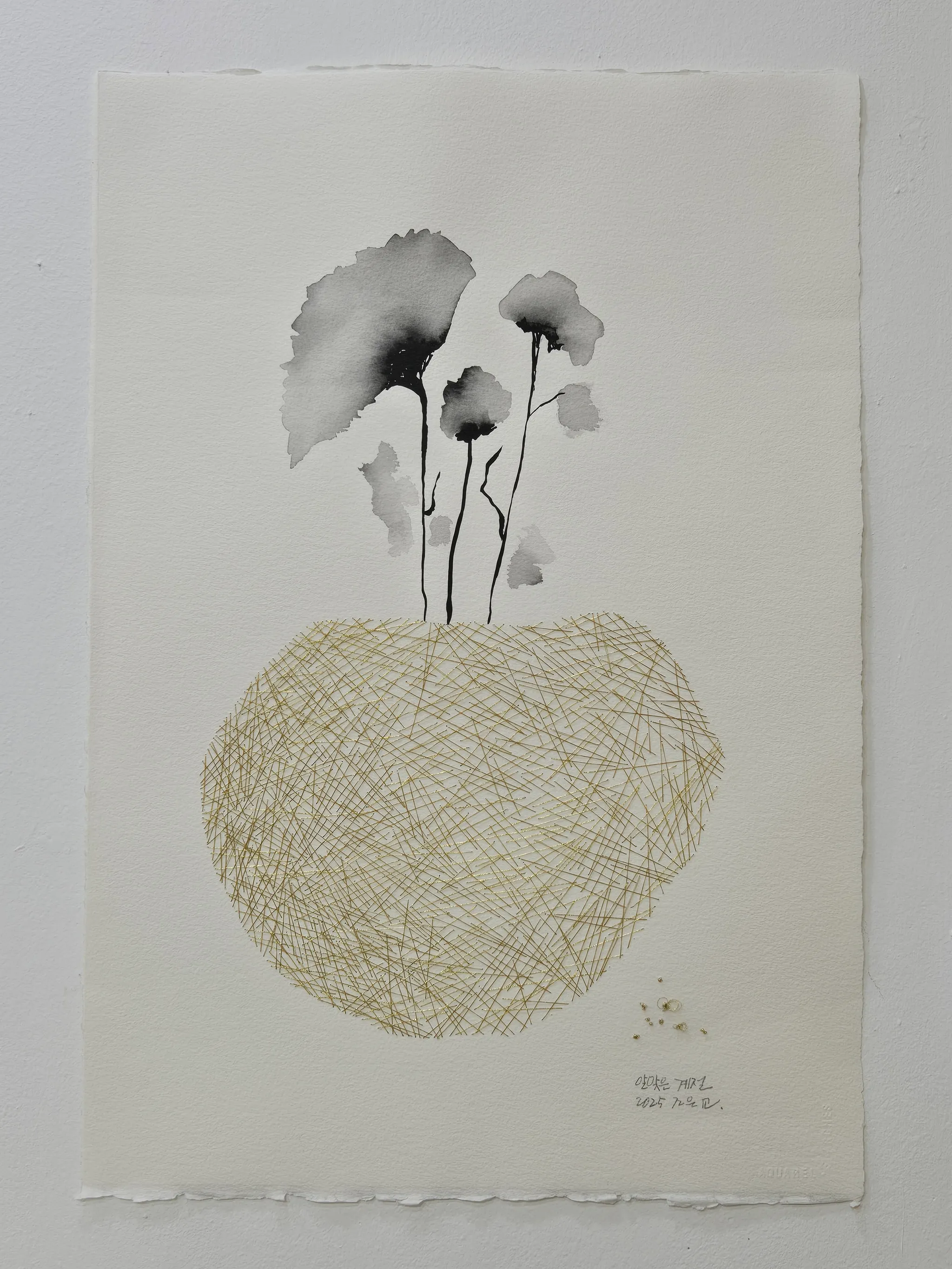 조은교/ 알맞은 계절/ 종이에 먹, 실 / 39.5x57.5cm / 2025 / 800.000