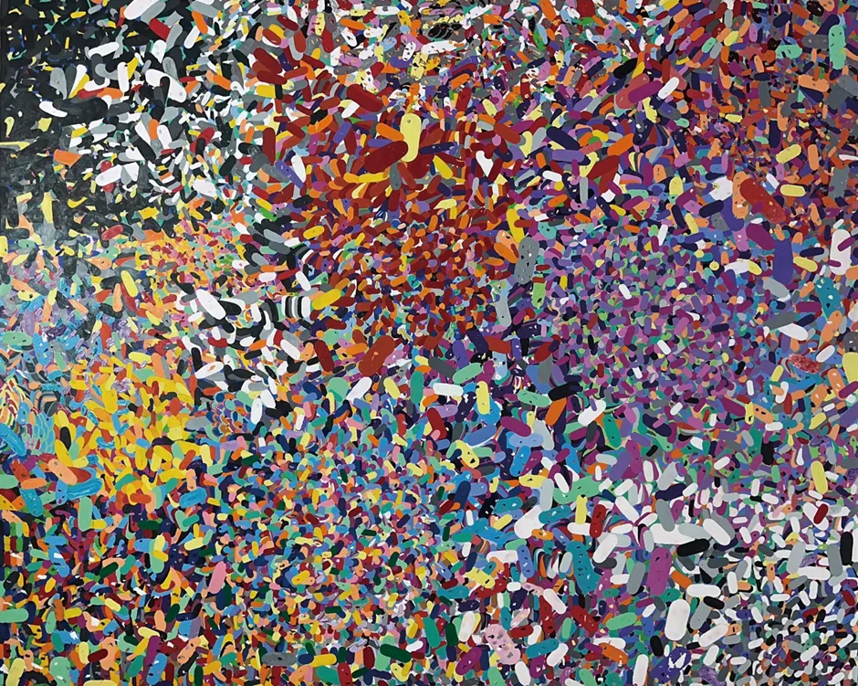 다음으로는 작가의 작품에는 이중적인 특성이 있습니다. 하나는 약품의 캡슐처럼 구분된 공간 속에서 비교적 사실적으로 세계를 재현하고자 합니다. 다른 하나는 이 캡슐처럼 구분된 공간들을 모으며, 다시 재구성하며 새로운 형태를 형성합니다. 이 둘은 상호적인 관계를 가지면서도 서로 다른 조형적인 층을 형성합니다. 하나는 사실의 공간이며, 다른 하나는 사의적인 공간으로 볼 수 있습니다. 하나는 현실이고, 다른 하나는 생각, 현실을 넘어서는 사의적인 조형, Meta-physic한 세계입니다.