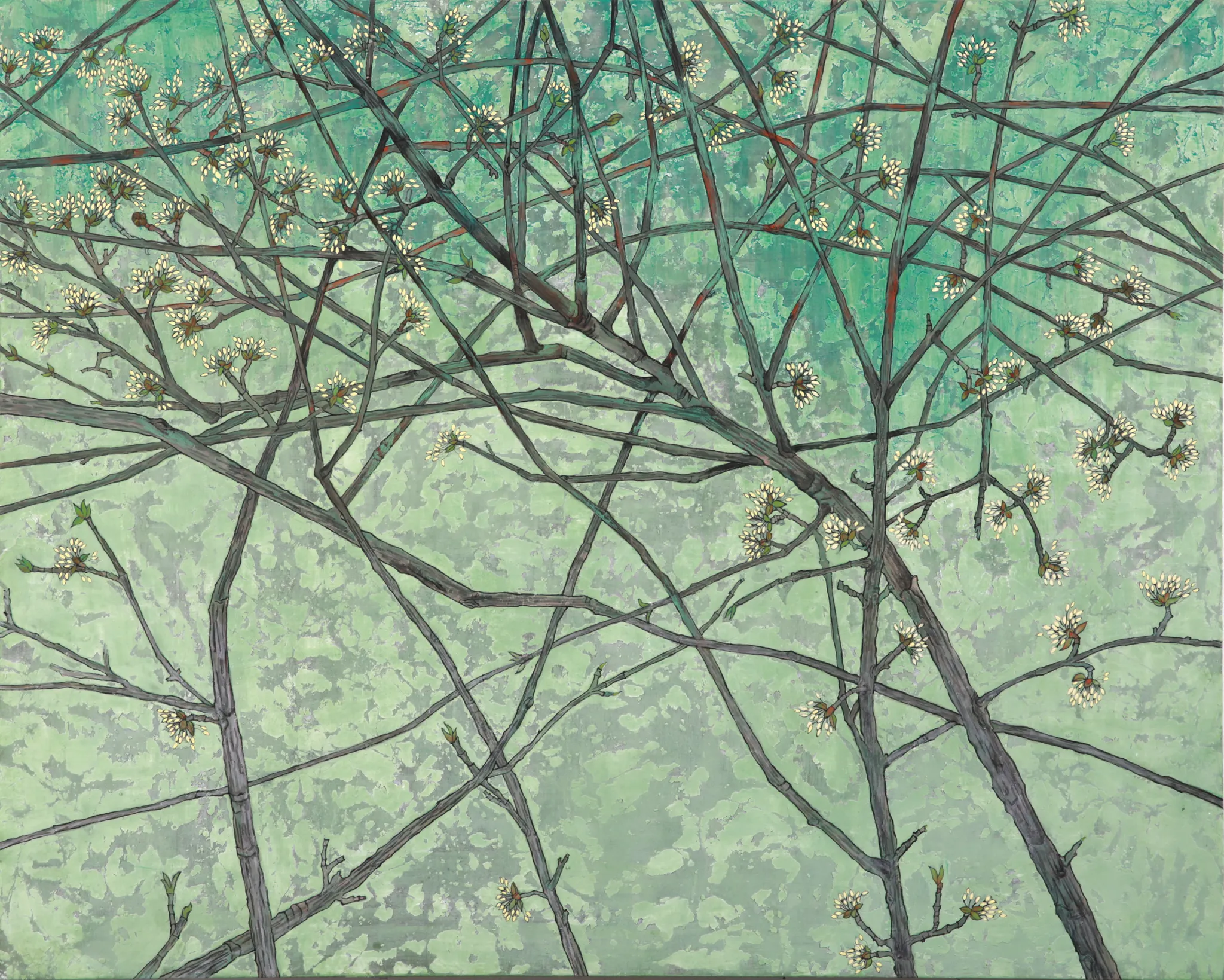 안경희, 기다림의 시간, 90.9X72.7, 순지에 분채, 석채, 2024