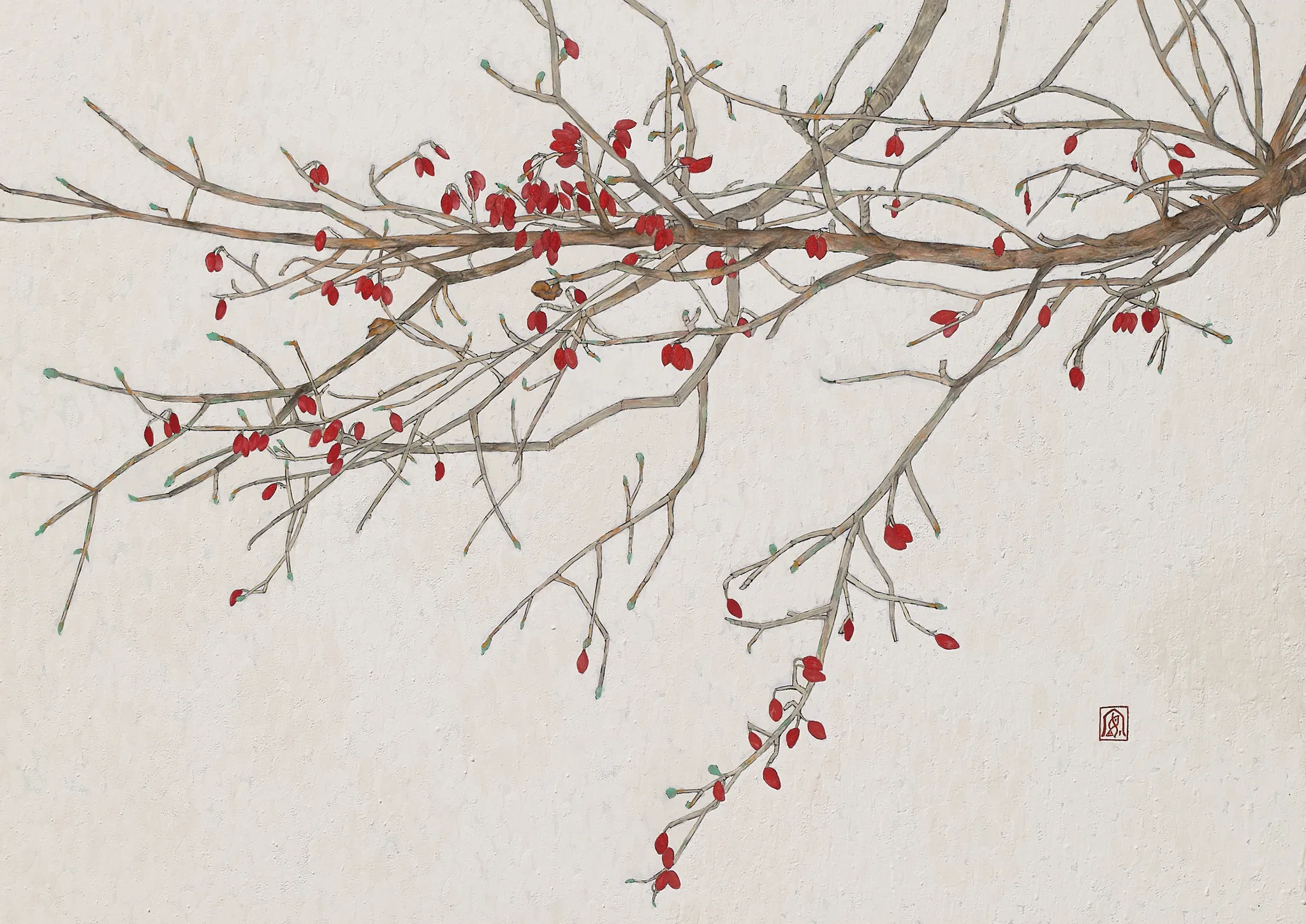 안경희, 남겨진 시간, 90.9X65.1, 순지에 분채, 석채, 2025