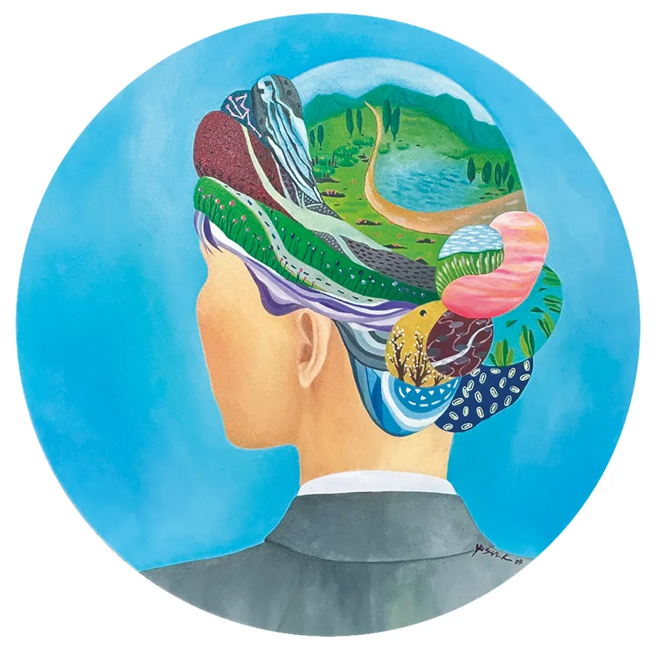 나의 작품에 등장하는 여인은 정서를 품은 공간이다. 인간이 느끼는 감정에 대한 대상을 자연에서 찾고, 화면에서 보여지는 여인은 현대를 살아가고 있는 주체며, 주체가 지닌 감정의 대상은 자연이 된다. 인간 여인의 몸체는 작품에서 등장하는 화자(주체)이고, 올림머리의 형상 속 반추상적 이미지는 객관적 상관물의 대상이 된 자연이다.