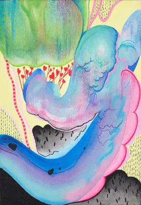 다양한 선과 색의 조합으로 이루어진 모호한 덩어리 형상을 보며 내 안의 설명되지 못한 감정들과 그것들을 끌어안고 살아가야 하는 내면을 잠시 알아차려본다면 좋겠다.