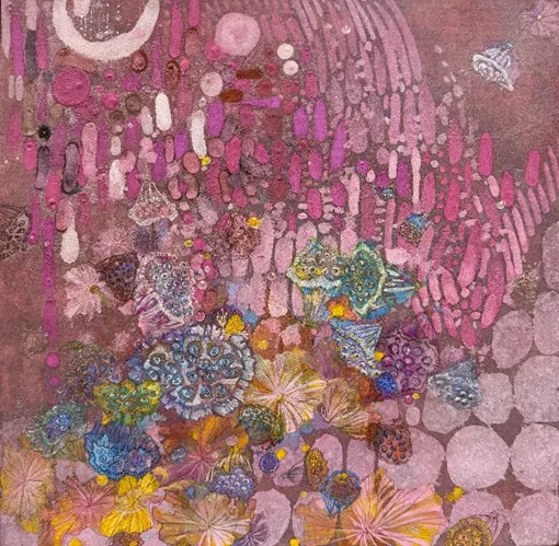 천주현/따뜻한 눈빛으로 바라보던 7월의 어느 날3/장지에 분채, 수정말/117x91cm/2024/4,000,000