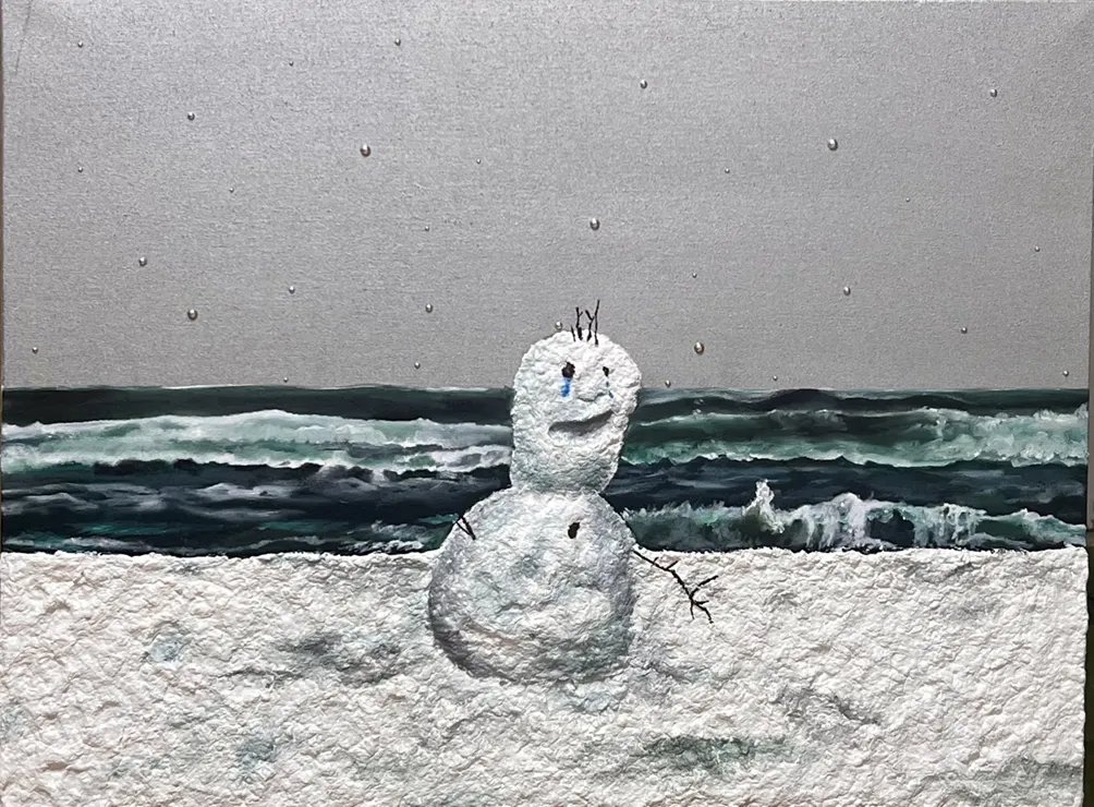 눈사람은 은빛 바다 너머를 멍하니 바라보며
