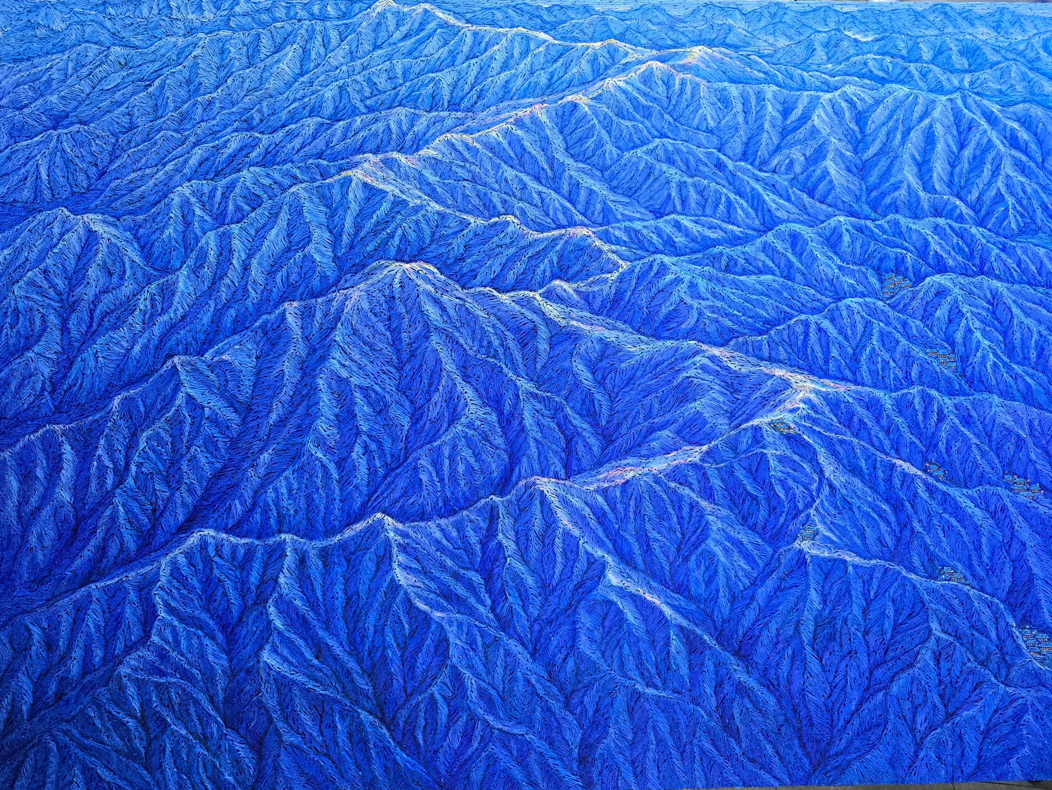 만개 이상의 종이조각을 붙이는 일과 물감으로 도포한 뒤, 다시 천번 이상의 붓질은 실로 노동집약적이고 시간을 많이 소요하는 작업이지만 이러한 지난한 작업을 통해서 쉼없이 가고자 하는 것은 생명이라는 것이 멈춤이 없는 반복과 영속성을 갖고 있는 것과 같은 의미가 아닐까 한다.