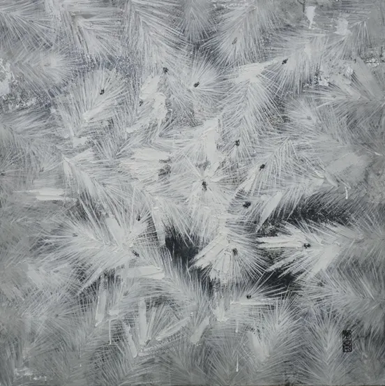 작업의 주요 모티프인 소나무는 흔들리면서도 꺾이지 않는 내면의 태도를 상징한다.