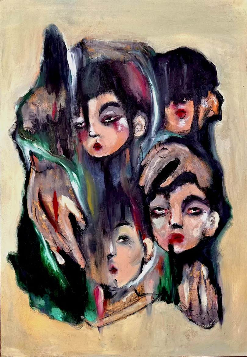 궁극적으로, 이一系列(일련의) 작업은 인간 관계의 쓸쓸하고도 달콤한 문법에 대한 한 통의 러브 레터입니다. 이별의 아픔이 사랑했던 것에 대한 감사와 어떻게 공존하는지 묵상합니다. 한 작품의 진정한 완성은 관람자가 그 안에서—관계의 해어짐이나 그 기원보다 오래 지속되는 색채에서—자신만의 이야기를 발견할 때 비로소 이루어집니다. 진정한 연결은 결코 사라지지 않기 때문입니다. 단지 형태를 바꿔 다른 곳에서 계속될 뿐이죠.My work begins with the mirror—an object that reflects not only our external appearance but also the internal landscape of our emotions. In this way, painting has always served as my mirror: a surface where I translate thoughts into faces and feelings into form. I started by painting portraits but soon began integrating shapes and colours that live in the background, exploring the idea that our environment is a vital echo chamber of our state of mind.