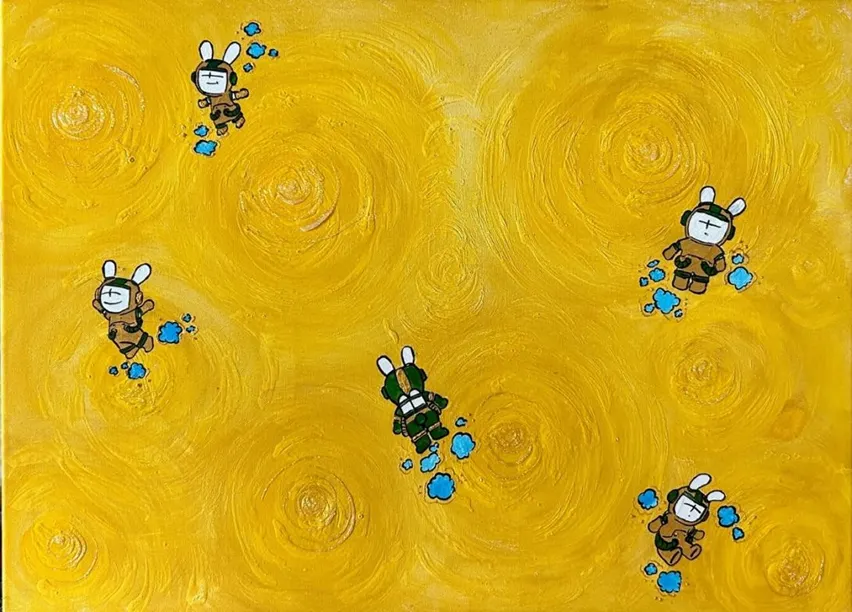 작품 속 백토끼는 각기 다른 위치에서 자유롭게 부유하며, 마치 우주의 일부가 된 듯 무 중력 상태 속에서 유영한다. 이는 단순한 캐릭터적 표현을 넘어, 개인의 세계관 속에서 스스로를 지켜내고 확장해 나가는 자부심을 은유적으로 담고 있다.
