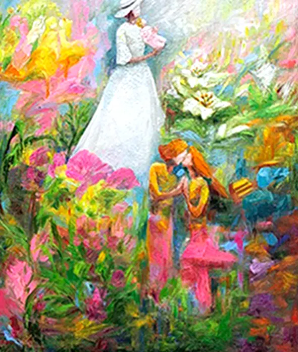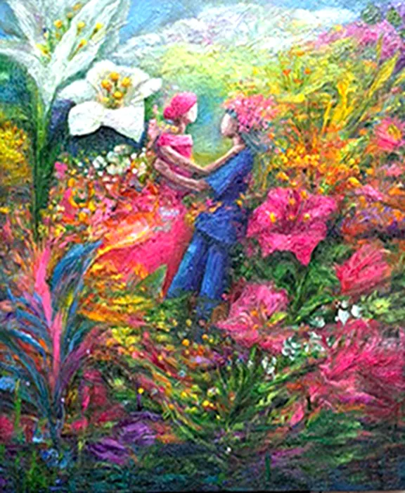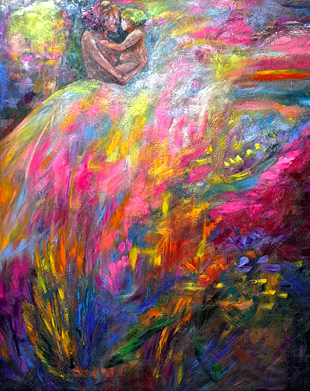 작업은 나의 내면 깊은 곳에서 피어난 기억, 또는 억압과 결핍 속에서 마주한 ‘나와 신성한 존재' 와의 만남을 시각화한 것이다. 반복되는 상처, 외면된 자아, 분열된 내면은 마치 혼란스러운 색채의 숲처럼 나를 감싸고 있었지만, 그 가운데에서 나는 한 줄기 빛처럼 다가온 ‘신성함’의 숨결을 느낀다. 그 숨결은 억압되고 눌려있던 어둠 속 상처로 얼룩진 자아와 사회적 페르소나의 충돌 카오스 상태인 심연을 치유와 회복, 자유와 놀라운 신비의 환상적인 아름다움을 일깨운다.