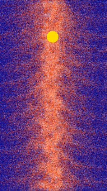 여기에서 중요한 표식이 하나 더 있습니다. 저는 화면 속에 원을 반복적으로 배치합니다. 복잡성이 극대화될수록 **하나의 원(●)**은 시선을 정박시키는 앵커가 되고, 그 강한 인상은 작품의 아이덴티티로 축적됩니다. 원은 단순한 도형이 아니라, 움직임과 정지, 진동과 정숙 사이를 연결하는 호흡의 박자이자, 관람자가 이미지의 “앞”이 아니라 “안”으로 들어가도록 여닫는 통로입니다.