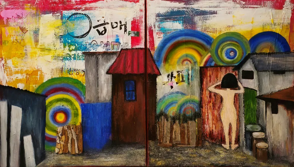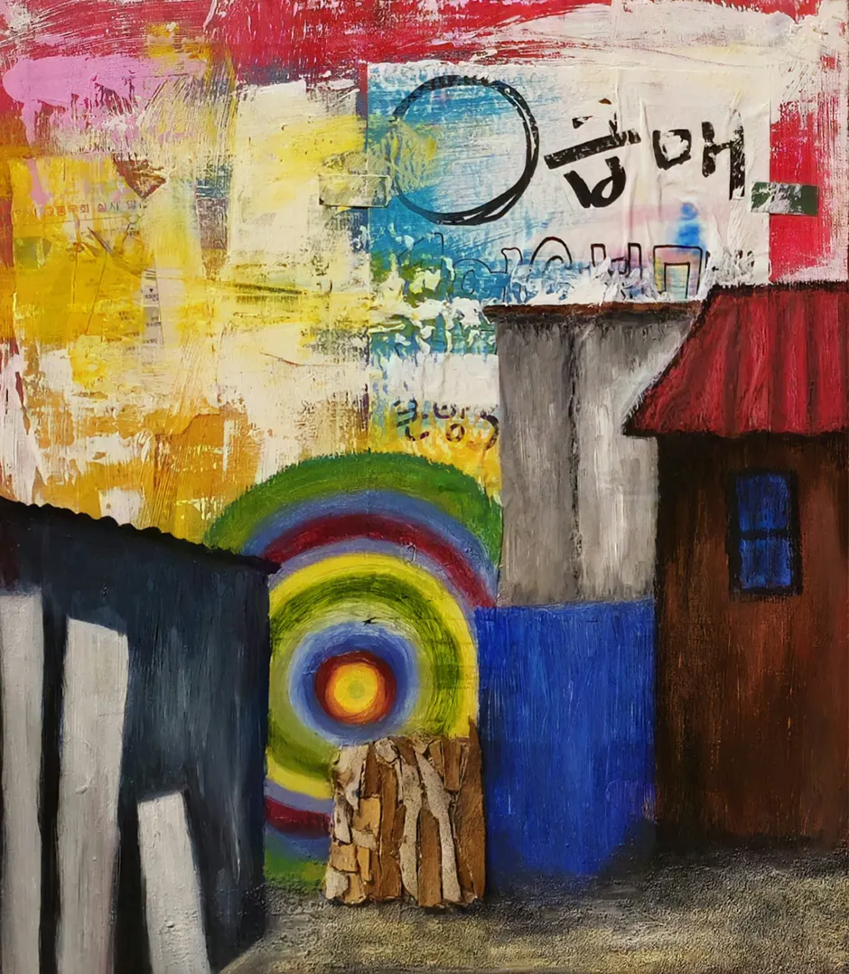 신림동은 벗어나고 싶지만 떠나면 그리운, 경멸과 연민이 뒤섞인 복합적인 감정의 공간입니다. 저는 이 감정을 캔버스 위의 거친 질감, 즉 '마띠에르(Matière)'를 통해 표현하고자 했습니다. 재료들이 품고 있는 서사가 감상자의 기억과 만나 새로운 울림을 만들어내길 바랍니다.