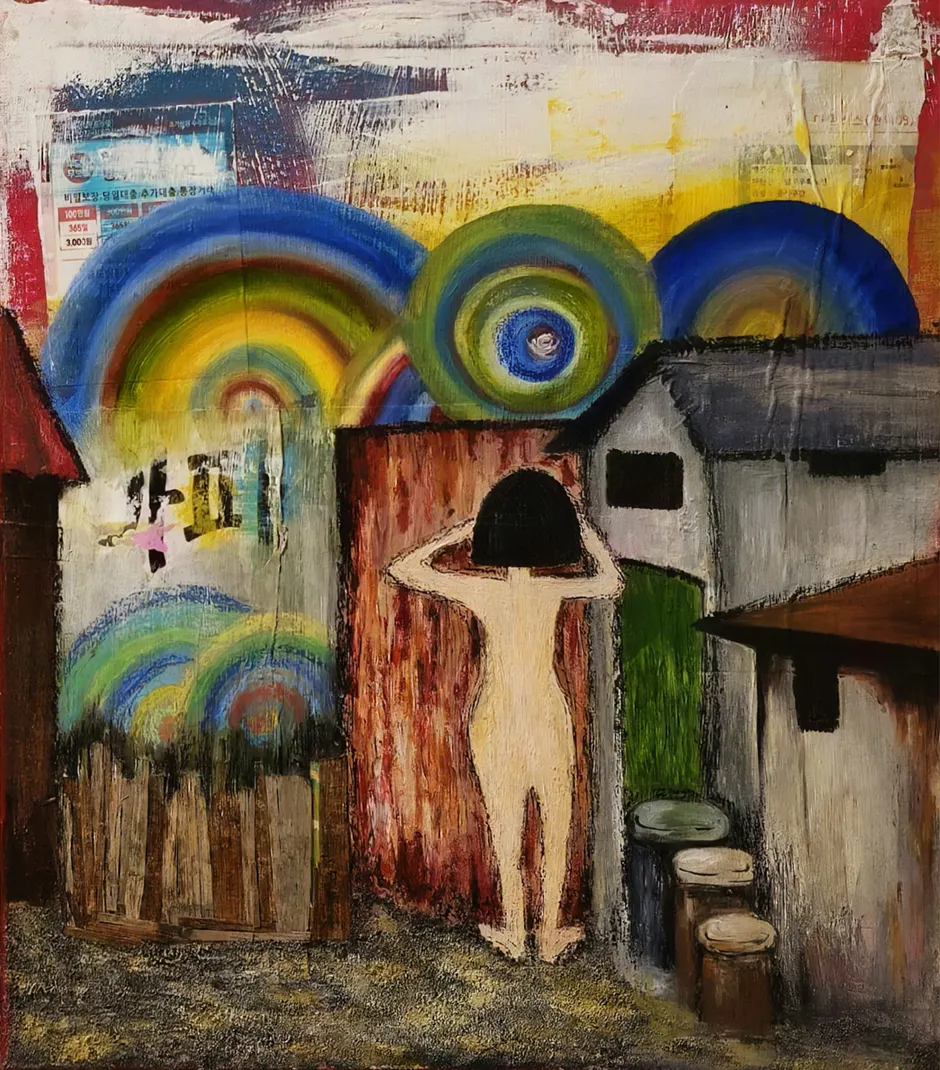저의 작업은 제가 나고 자란 신림의 낡음에서 시작됩니다. 과거 고시촌 시절부터 꿈을 좇는 사람들과 대를 이어 가난을 벗지 못하는 사람들이 뒤섞여 살아온 동네, 아직도 도시가스가 들어오지 않아 LPG 통을 쓰는 집과 공중화장실을 함께 쓰는 집들이 남아있는 곳. 그 아이러니한 풍경 속에 사라져가는 삶의 흔적들을 그림으로 붙잡고 싶었습니다.