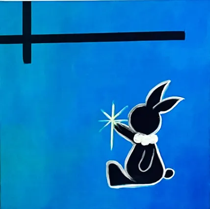 작가는 2025년 새로운 시리즈를 준비하고 있다. 시리즈 이름은 <밤중수유>로 이 시대 공동체에서 ‘돌봄’에 대한 논의를 개인적 경험과 사회적 이슈 등의 소재를 사용하여 다양한 방식으로 풀어내고자 한다. 이번 작품인 ‘대칭적 관계001’은 회화 작품으로 두 개의 동일한 사이즈의 작품이 대칭적으로 설치된 작업이다. 이 작업은 작가 본인의 자녀를 검정 토끼로 상징화 하였고 네모 프레임으로 엄마와 자녀의 대칭적 관계를 표현하였다. 야광 스티커를 통해 자녀를 밤 중에 돌볼 때의 심정을 은유적으로 표현하였다. 작가는 <밤중수유> 시리즈를 통해 우리 시대에 누군가를 ‘돌봐야 한다는 것’이 일방적이고 희생적 개념이 아닌 상호 의존적이고 대칭적 관계임을 이야기하고자 한다.