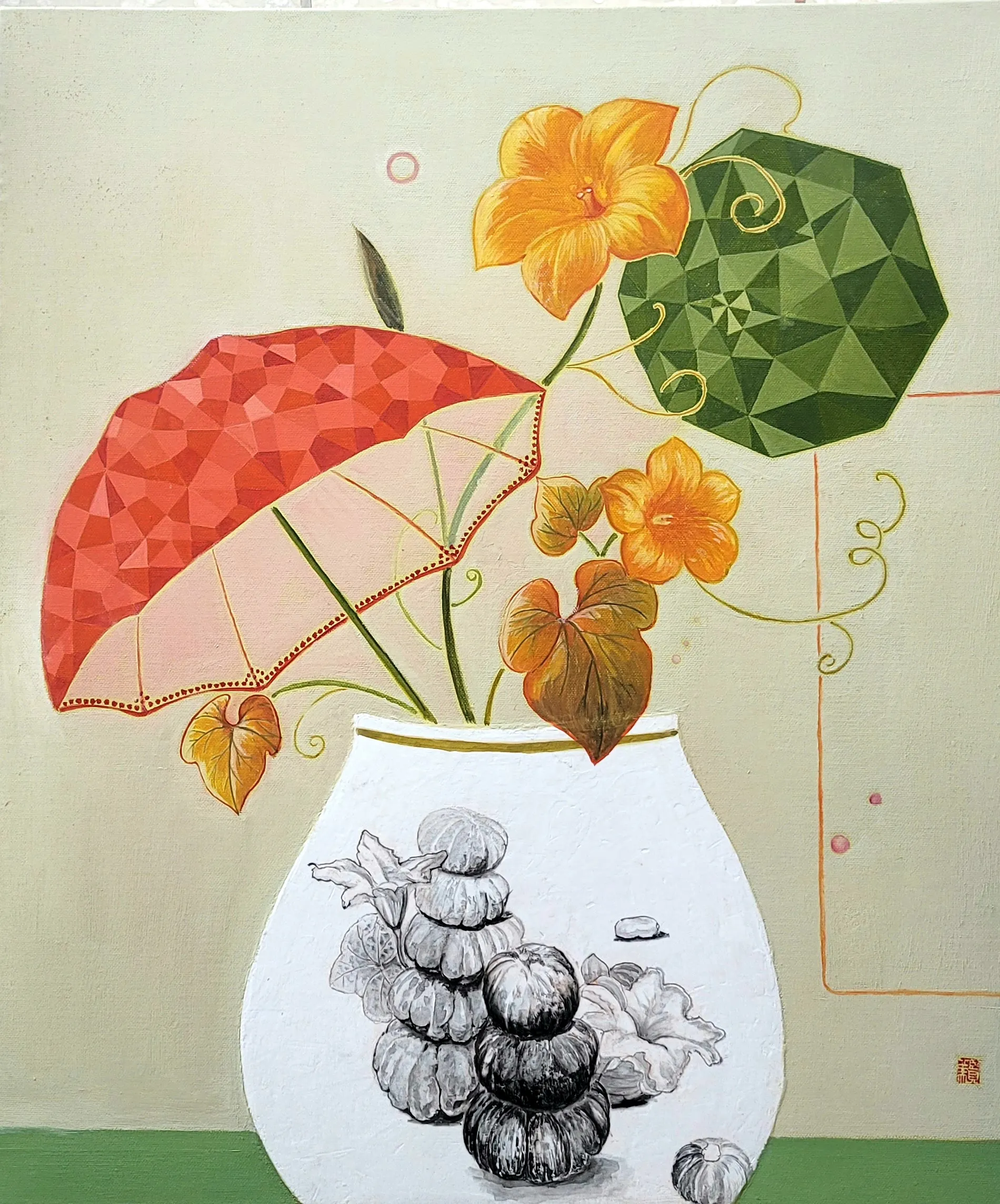 황현미/치유의 정원 1/캔버스에 유화, 먹/ 45.5×53.0/2024/1,500,000