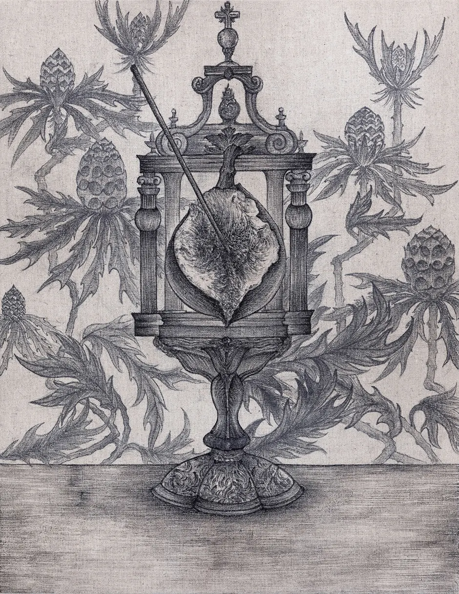 어느 날 문득, 불현듯 찾아오는 죽음의 불안에 압도당한다. 그 감정은 스쳐 지나가지 않고 마음속에 자상처럼 남는다. 상처의 윤회 속에서, 다시금 그 순간들을 되짚으며 떠나간 이를 향한 그리움과 마주하게 된다.그리움은 단순히 극복하고 지나가는 감정이 아니다. 그것은 마음속 깊은 곳에 남아 다시 떠오르는 기억이 되며, 때때로 존재를 흔드는 울림으로 다가온다. 프로이트는 이러한 반복되는 트라우마를 ‘무의식의 방어기제’로 보았다. 인간은 상처의 순간으로 되돌아가, 스스로 그것을 극복할 힘을 만들어내며 삶의 균형을 되찾고자 한다. 이러한 반복의 윤회 속에서 죽음을 정면으로 응시하려 한다. 다양한 정물의 도상을 빌려 삶과 죽음, 공허와 욕망의 대비를 묵시록적인 이미지로 풀어내고자 한다. 삶에서 죽음만큼 실존의 의미를 강렬히 드러내는 것은 없다. 인간은 죽음의 징후를 마주할 때마다 존재의 근원에 대해 질문을 던지며, 죽음 앞에 선 단독자로서의 고독을 두려워한다. 그러나 그 두려움은 곧 삶이 존재함을 증명하는 강력한 징표이기도 하다. 삶은 죽음을 불안이라는 형태로 되비추고, 그 불안은 다시 삶을 증명하는 욕망의 반사로 나타난다. 작품을 통해 그 불안과 욕망, 무(無)와 존재 사이를 맴도는 실존의 표상을 정물이라는 언어로 풀어내고자 한다.