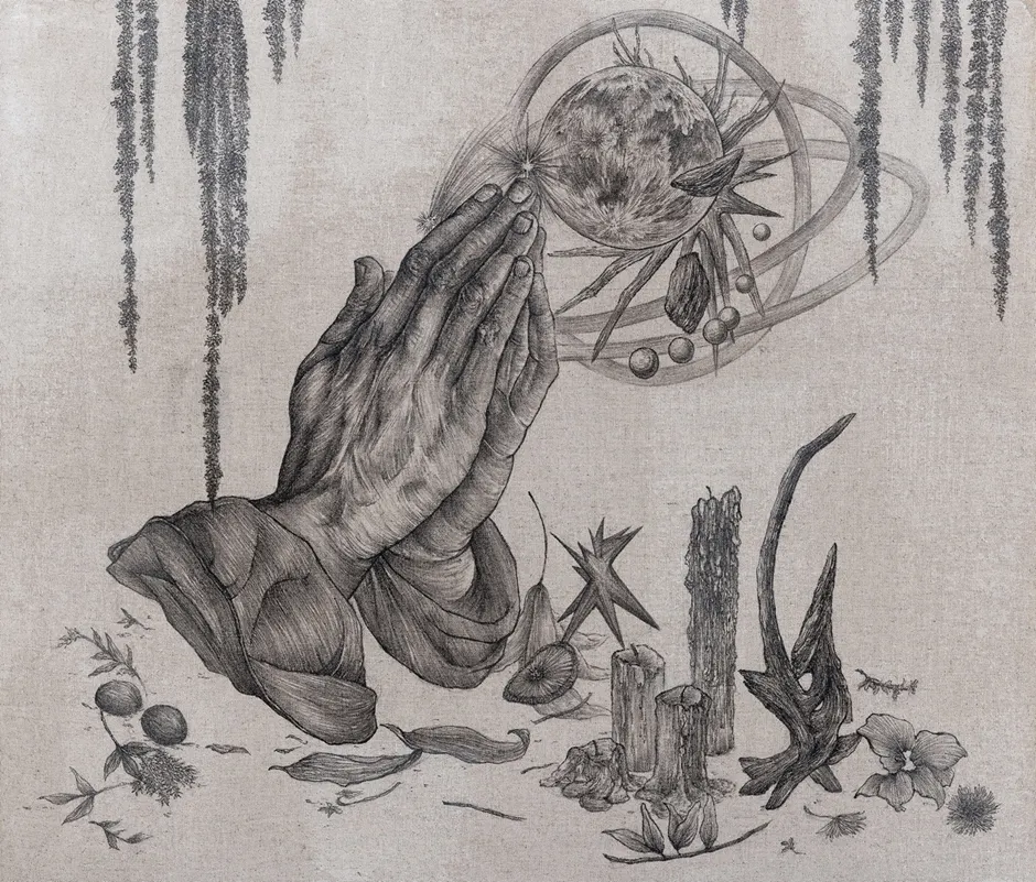 박나회 / 피안 속 기도 / 린넨 위에 호분, 먹, 석영 및 혼합재료 / 45 × 53 cm / 2025 / 450,000