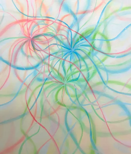 나의 작업은 혼란스러운 내면을 치유하고 평온을 회복하는 과정에서 출발한다. 얽히고 뭉친 선의 흐름은 그 과정을 드러내는 출발점이 된다. 겹겹이 쌓인 선들은 복잡한 결을 보여주며 동시에 풀려나 서로 다른 방향으로 흘러간다. 이는 혼돈 속에서 질서를 찾는 과정이며, 긴장과 이완이 교차하는 순간을 화면에 담아낸 것이다. 반복되는 선의 중첩은 단순한 흔적이 아니라 파동처럼 이어지는 에너지의 기록으로, 화면 위에 고유한 질서와 구조를 형성한다. 이러한 흐름은 긴장과 해소가 교차하는 장을 만들며, 불안과 평온이 함께 머무는 공간을 드러낸다. 이는 개인적 경험을 넘어 보편적 감각으로 확장되고, 관람자에게도 공유될 수 있는 풍경이 된다. 선의 결은 성찰의 언어로 기능하며, 작품을 마주한 이들이 잠시 머물며 스스로를 돌아보고 평온을 얻을 수 있는 자리가 되기를 바란다.